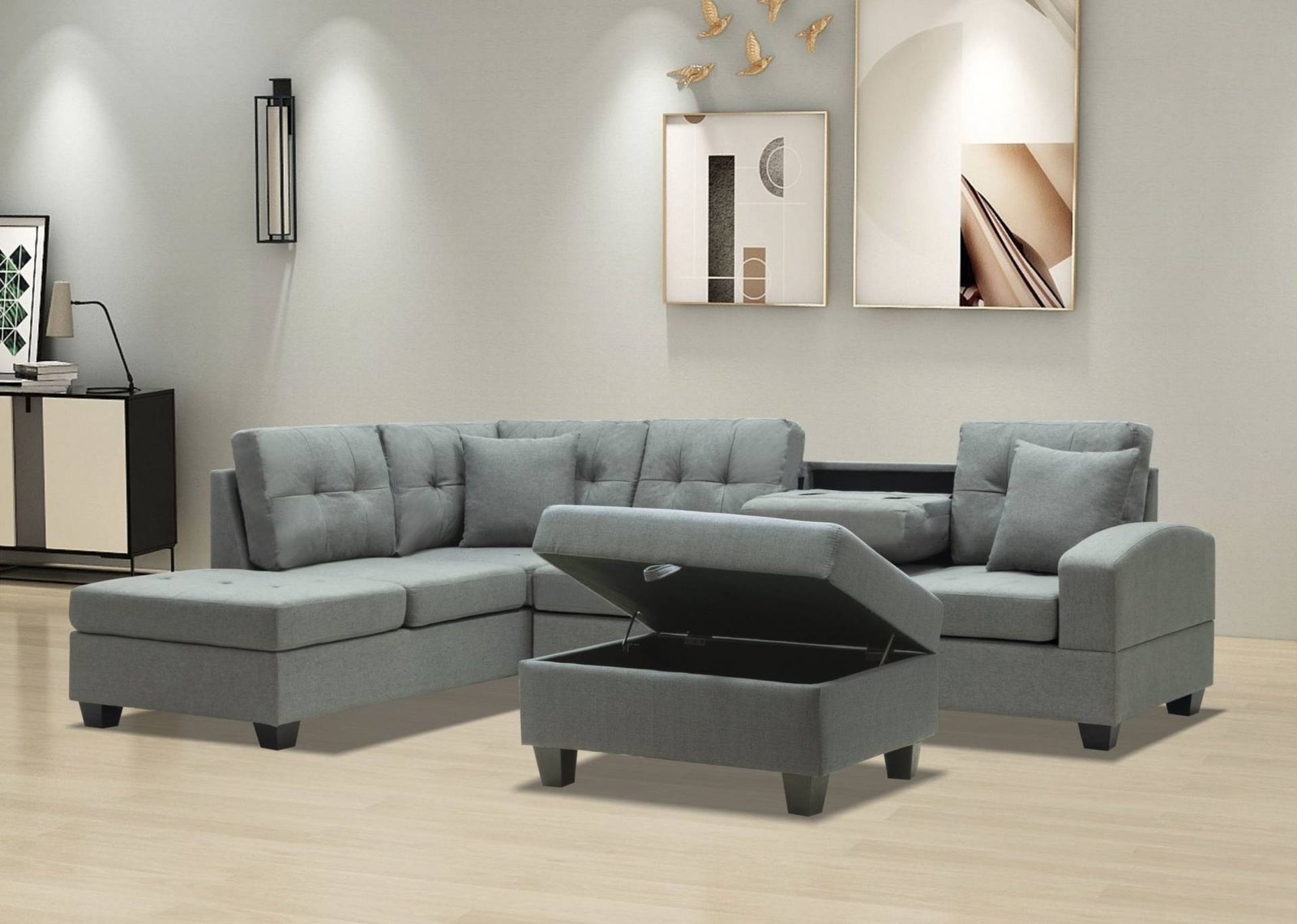 Emma Reversible Sectional Sofa with Storage Ottoman - Grey